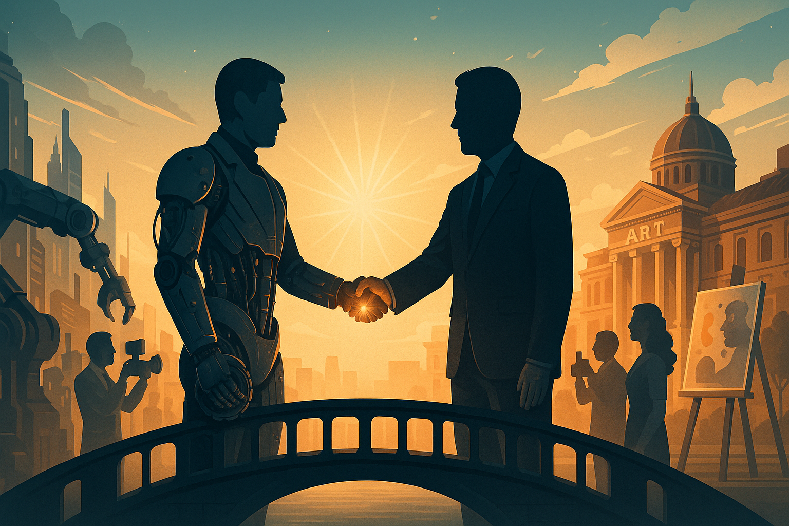 The logo’s design language reflects the convergence of two worlds: machine logic and human sensitivity. It symbolises our belief that with the presence of empathetic, intelligent machines, we can unlock more space for creativity, critical thinking, and emotional depth. The aesthetic is sleek and contemporary, referencing both advanced technology and timeless artistic simplicity.