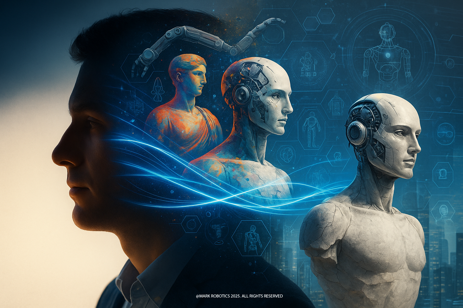 In shaping the identity of this vision, our logo draws deeply from the founder Ricky Ma’s artistic and technological research. Under the name Mark Robotics, it encapsulates the poetic idea of future societies where humans and machines co-create—a reality where robotic assistants are embedded in daily life, supporting not just productivity, but human potential and imagination.